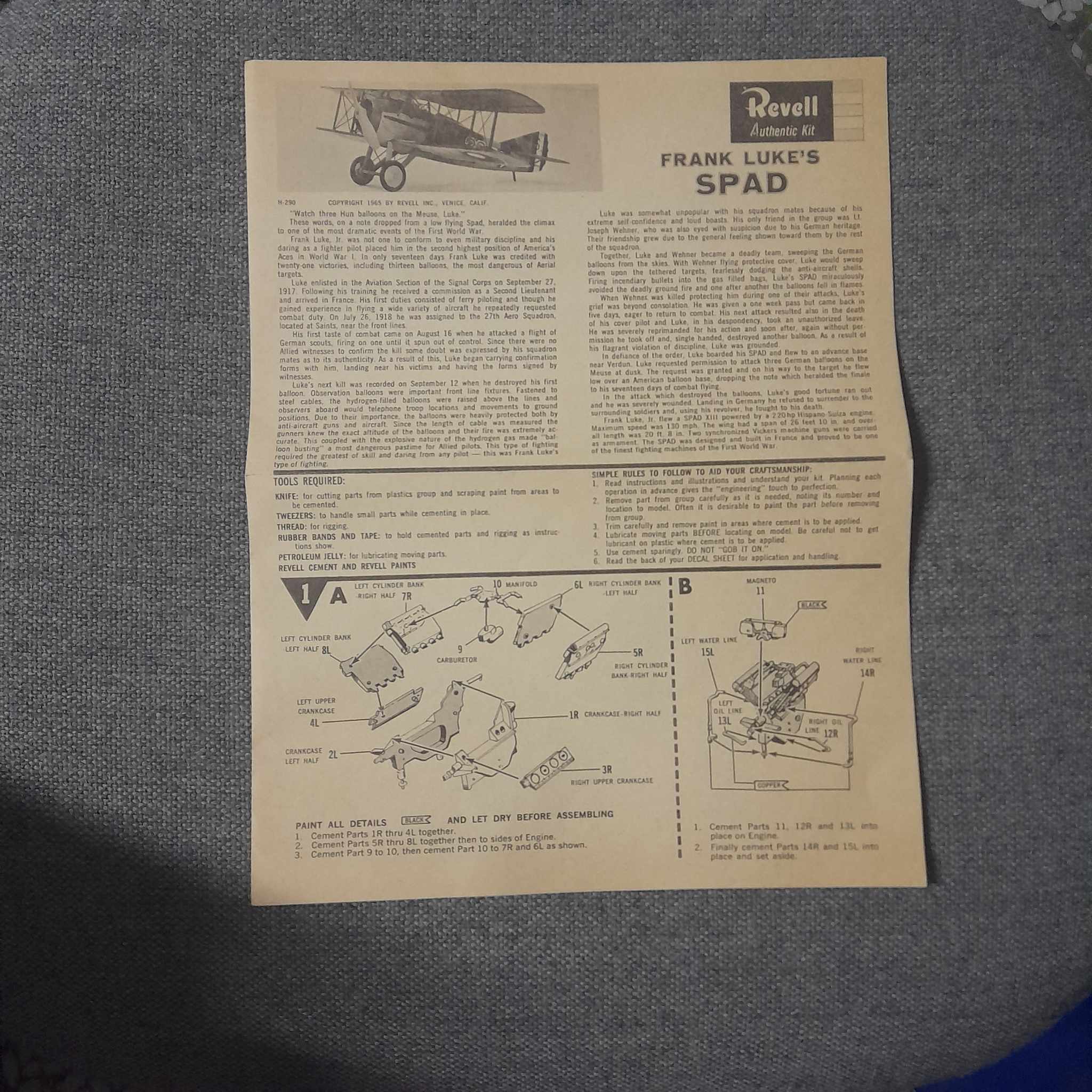 Vintage 1965 1/28th Revell SPAD XIII “Frank Luke”